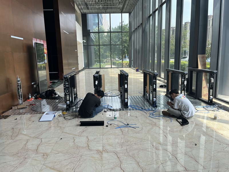 該大廈已經建好多年為更好的管控出入人員,現在需要在大堂安裝速通門及人臉識別系統。該速通門采用鐵軍品牌的,該品牌被評為是中出網“通道閘十大品牌”稱號。此次在該單位安裝了6個人行通道速通門和一個拉貨圓柱擺閘。